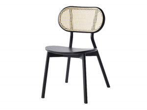 The Giri chair blends steel frame with a stylish rattan backrest, offering a touch of rustic elegance. Its steel legs with a black duco coating finish provide a modern contrast.